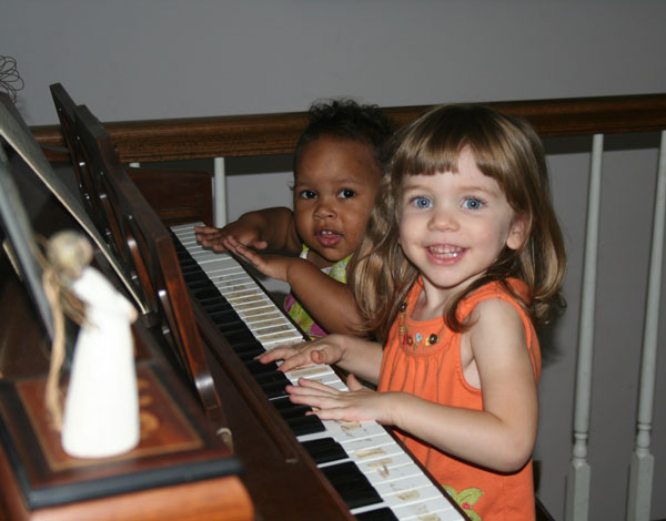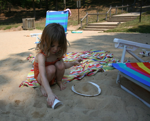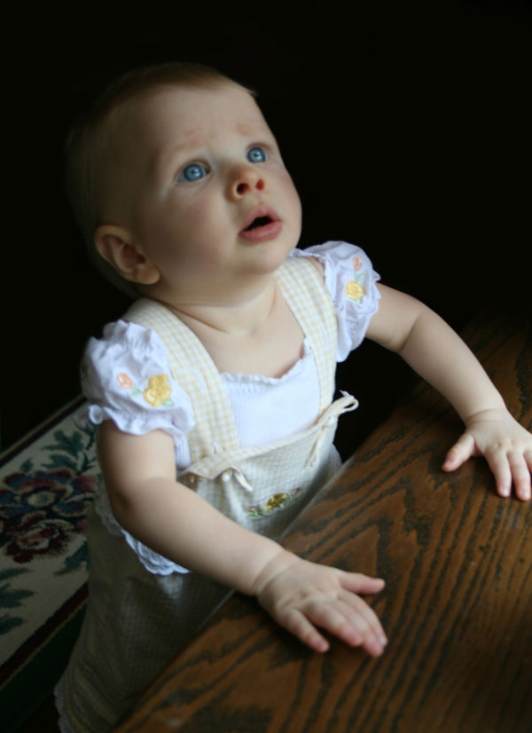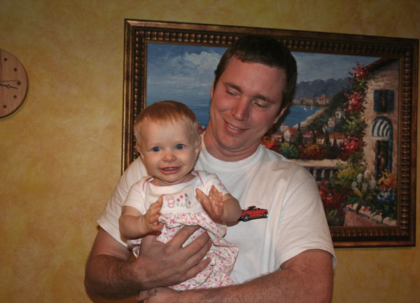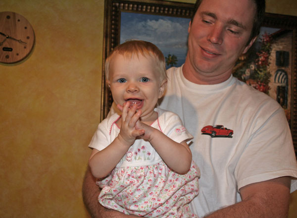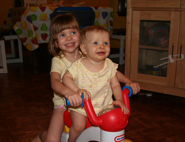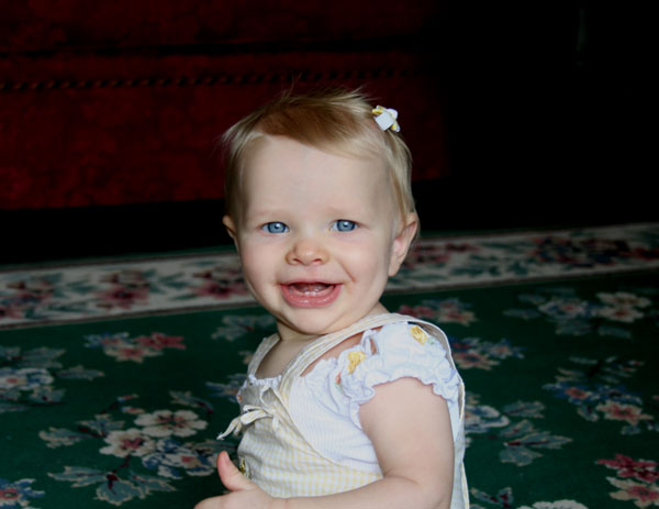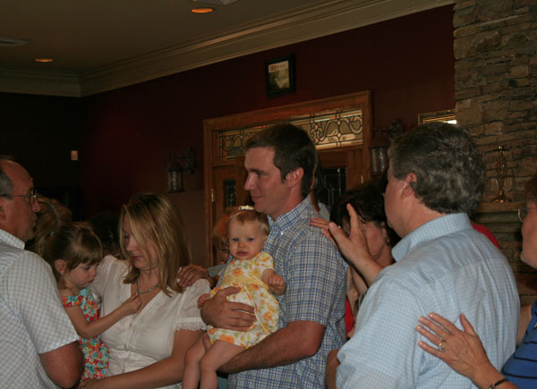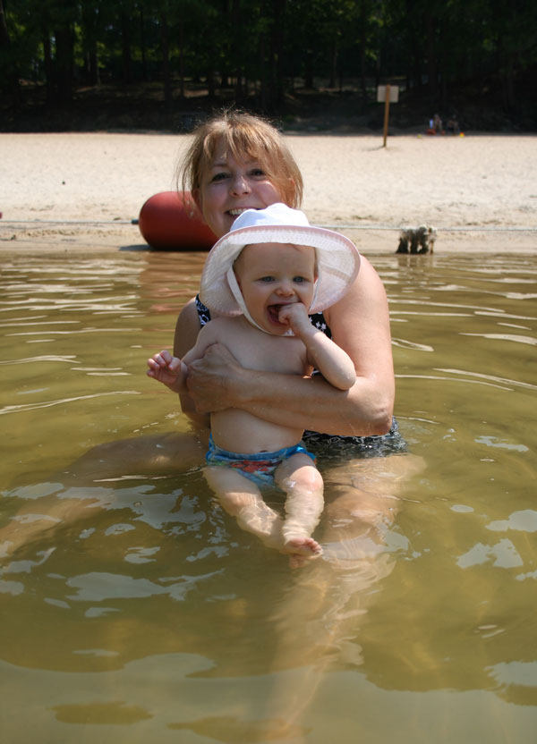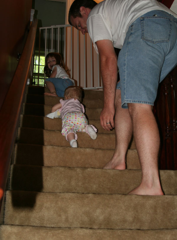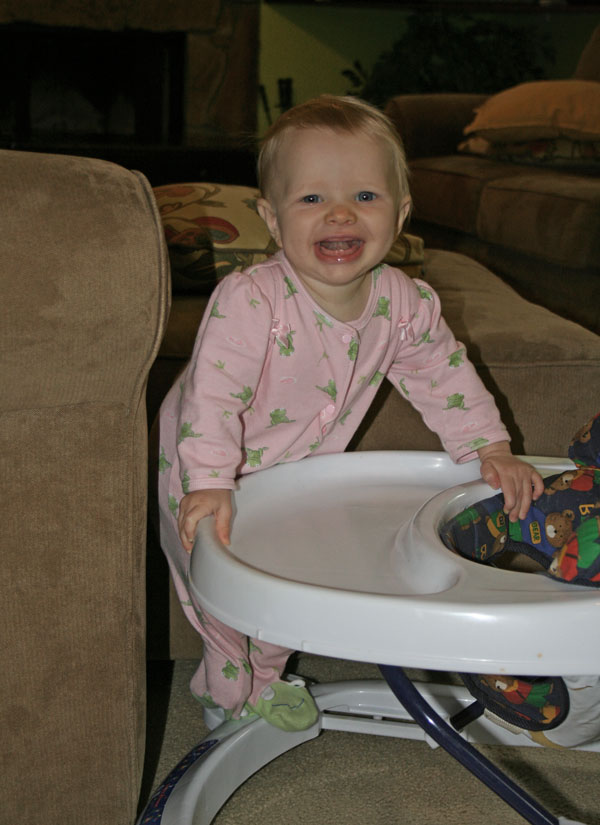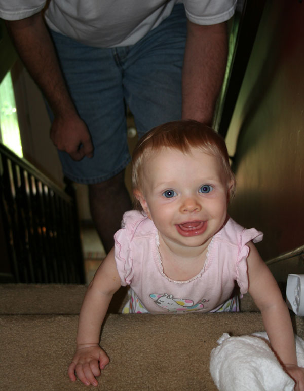 Once again I'm late posting a new page. I'm trying to remember what happened in August. It's good thing I have pictures to remind me. Jerry took a trip to the Salt Lake City for speed week. I don't have pics here, but you can check it out on the business website- http://www.diyautotune.com/cars/customer/gary_hart_studebaker.htm if you're interested. I took the girls to the beach at Red Top Mountain with my mom. It's a pretty nice lake beach. Lesah had a few "firsts" this month. She learned to climb stairs. She got up about 3 steps before I realized this. She was following her big sis. Jerry followed her up the rest of the way while I took pictures. She had no problem getting to the top. She seemed a little bummed when the stairs ended. She loves to climb, especially on & around her walker. She looks so proud standing on her walker in the picture below. It's like she knows there's an extra element of danger to climbing on a movable object. Lesah also learned to clap her hands. I think this was also something she learned from her big sis. My favorite first was when she made faces at me while I was feeding her. She was cracking me up, which only seemed to encourage her. Camille has said many cute phrases. I'm always thinking, "I need to remember this", but it's hard to keep track. One of my favorites this month was, "This is going to be fun!" -about picking up toys. I wish she always felt that way about it :) Another funny one is, "I'm just crying". She says it very matter-of fact. I guess she figured it's easier to just tell us than to put on the whole drama. We had the girls dedicated at church. We've been wanting to do that for a while. It's important to us to make a formal commitment to raising them in the church and with the knowledge of Christ. They will one day have to choose their own beliefs. Our prayer is that they will know God's love first through us, then choose to have a personal relationship with Him.