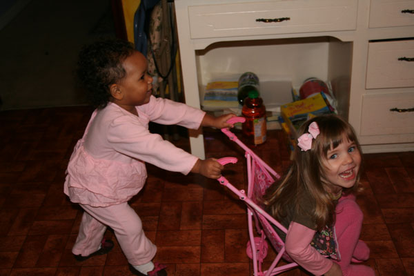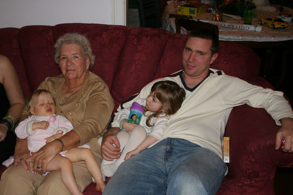 Lesah on Great Gramma's lap- tired girls