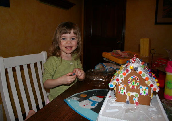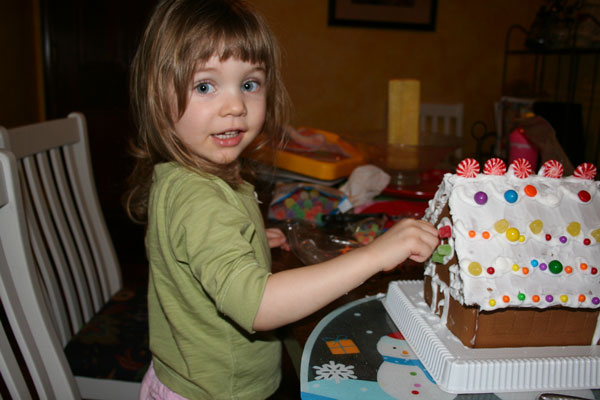 Decorating a gingerbread house with mommy- Camille did such a good job