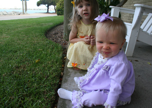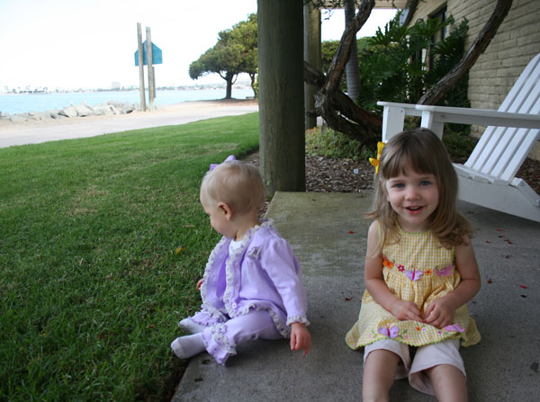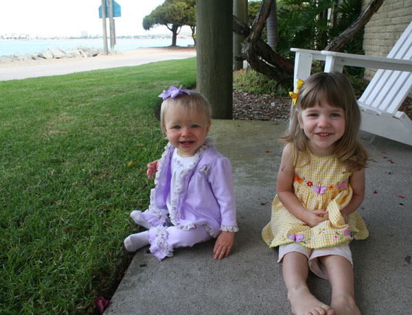Our bungalow by the bay The girls looked so cute the next morning in their bows. I had a little photo session. Lesah's rash was gone, so no more Benadryl. This was a much better day for her.