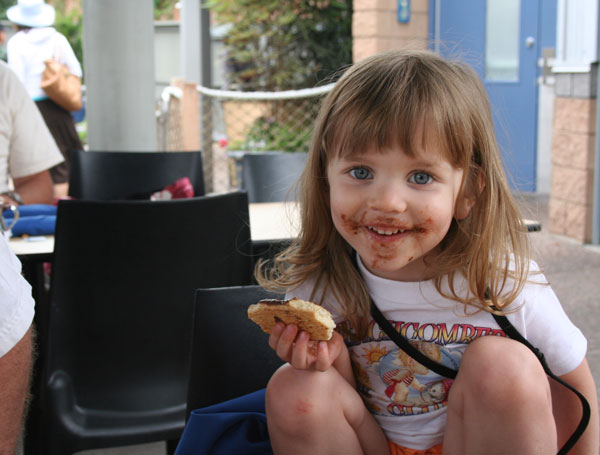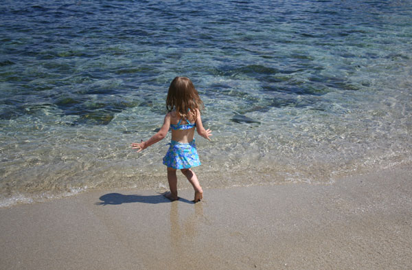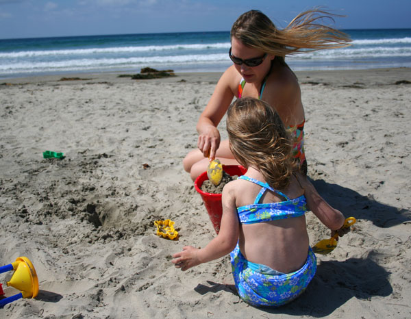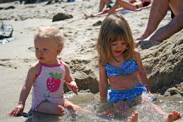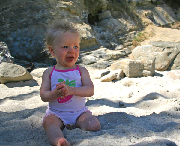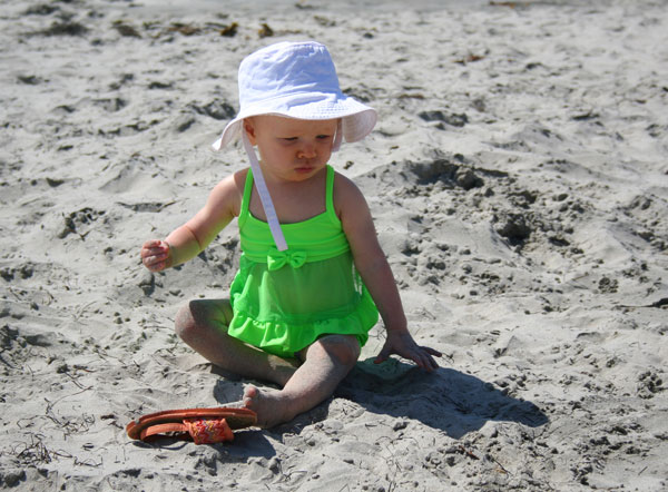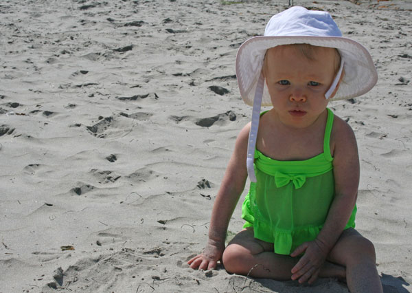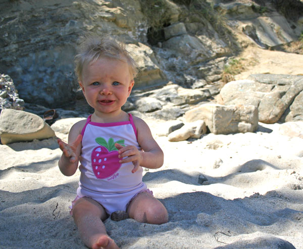 Lesah with surfer hair. She kept wanting to put sandy rocks in her mouth.