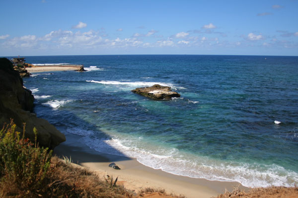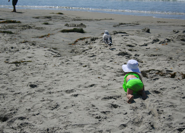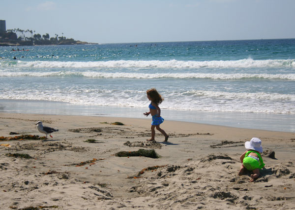 La Jolla Beach The next day we went to La Jolla beach. We were fighting some jet-lag, and taking it easy. Poor Lesah was taking Benadryl for a mysterious rash, so she was groggy when we got to the beach. She eventually perked up & started chasing the seagulls.