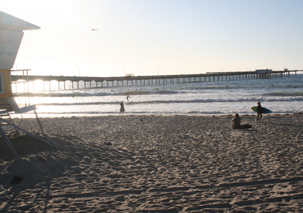 Ocean beach We went to Ocean Beach that evening. Jerry said it was like "little five points" on the beach. There were a lot of surfers out. I don't know how they can stand to surf in that freezing water when it's not even even hot outside.