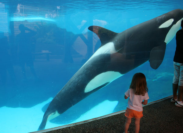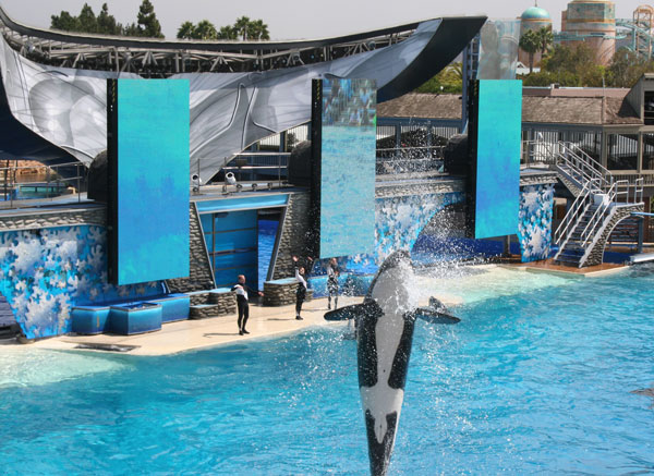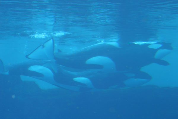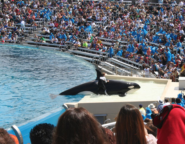 SeaWorld The next day we went to SeaWorld, a surprise favorite of mine. We loved the Shamu show and saw it twice, once when we first got their & once right before we left. Jerry made a special trip to the car with our cameras, so we could sit up front in the soak seats. I was bummed when we didn't get a drop of water- not one little splash. I could have had such great pictures! I was struck by the contrast between seeing these whales swim with their trainers & getting kisses........and the killer whale from the Planet Earth episode jumping completely out of the water & grasping a seal in it's jaws. The Shamu Show