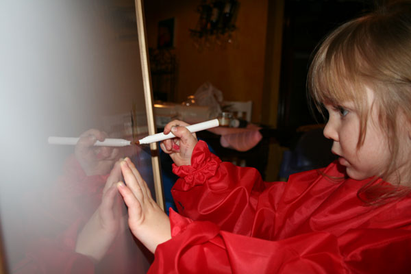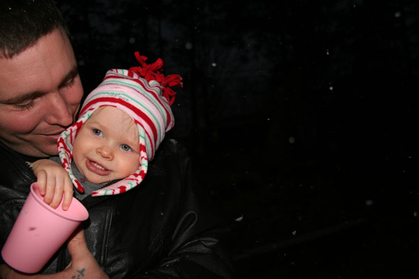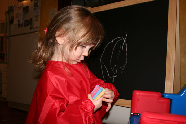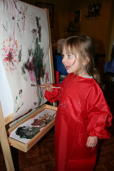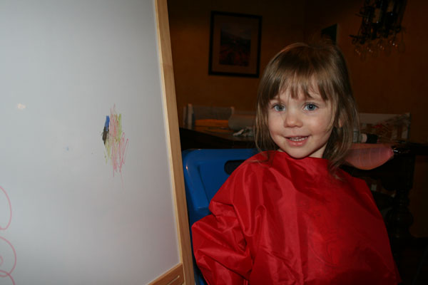 Happy New Year! We had a nice start to our new year with some snow. Camille was very excited about it. It's the first time she's been out in the snow. It didn't last much more than a day, but we had some beautiful fat snowflakes falling for a while there. It was great packing snow too. I made some snowballs that could knock someone's lights out. I then decided I'd better pack it more loosely, since causing bodily harm was not the goal. Camille got an easel for Christmas. I have pictures below of her trying it out. I love how she had to hold every piece of chalk in her hand, and make one mark with each color. She did the same thing with the markers, drawing lines in every color, each one overlapping the other. She loves painting with watercolors. I admit, I was excited for her to go to bed so I could paint a little myself. She had mixed up some really pretty colors. Camille has started making up songs. It's so cute. She likes to talk about things she's going to do "when I get older". She sometimes puts those things in her songs. She loves to dance with scarves. She does it in ballet class, and I thought we'd try it at home. She hands Lesah a scarf, "Here, Les, this one's for you.". She tries to engage Lesah in play now. It's a refreshing change from the constant battle for toys & attention (though we still have some of that too). Lesah is saying more words all the time. She says Ma Ma a lot more now. She also says- bye, hi, yeah, wow & ball. She has got the cutest little giggle that she does when she is particularly thrilled about something. She often does it when she has accomplished something- like getting a shape through the right hole. Jerry is doing well. He has added on to the business' office/warehouse space. The space next door opened up soon after he started looking for a larger spot- so cool how God worked that out. It would have been a big ordeal to move everything. I am part of a year-long discipleship group with some women from my church. I'm excited about finally developing some relationships there. It's given Jerry a chance to connect with some of guys there too.