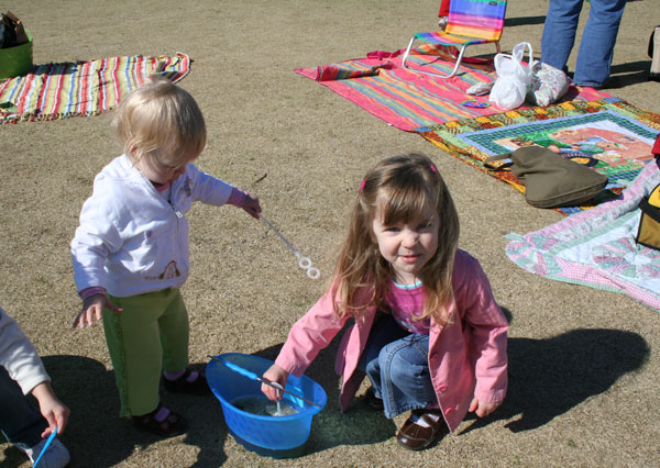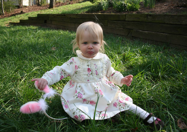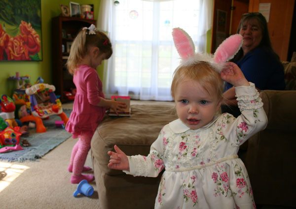 Things that happened this month: Jerry signed a contract with Penguin publishing to co-write a book (with one of his employees) on engine management systems. I'm very proud of him. A while back he was approached by the publishing company to write the book, which says something about the reputation he has built. Matt will be writing the bulk of the book (yeah, Matt!). Jerry will be doing some editing and filling in areas where he has more experience. The intention of the book is to be a practical approach to implementing fuel injection/ engine management systems. He hopes to also add some of the personality & humor that shows on the business website. Camille learned to pedal her bike. She also learned a few phrases from me & pulled them out later when they worked to her advantage - Mom, "don't worry about it." "just settle down." These are a couple of my favorite quotes of the month: "Little girls are all my friends." "They love me very much." She's learning to share more with Lesah and the art of "taking turns." (Lesah is still figuring that part out :) Lesah says new words and repeats what she hears all the time. We've stopped keeping track of her vocabulary. Camille was such a big talker. They are opposites in many ways, so I was expecting Lesah to be more quiet. That doesn't seem to be the case (where do they get it?). We now have more than one Dora the Explorer fan. Lesah shouts, "Dora" .... "Map" ....." Backpack". Our careful walker has turned into a little dare-devil. She loves to climb on everything! I had a weekend away and visited my cousin, Mandy, in Chattanooga. It was so nice to have some girl- time......adult girl-time, that is. Also, I finally raced my first autocross- yeah! It was a blast. I raced one of Jerry's Miatas. I got to run the track 12 times, so I was able to get a good feel for it. I spun out 4 times. Everyone says if you don't spin out you're not driving aggressively enough. What fun! I didn't take a whole lot of pictures this month. These don't require much explanation. The bottom few are from Easter. I couldn't resist pulling out the rabbit ears again. I'm sure they'll be back next year too :)