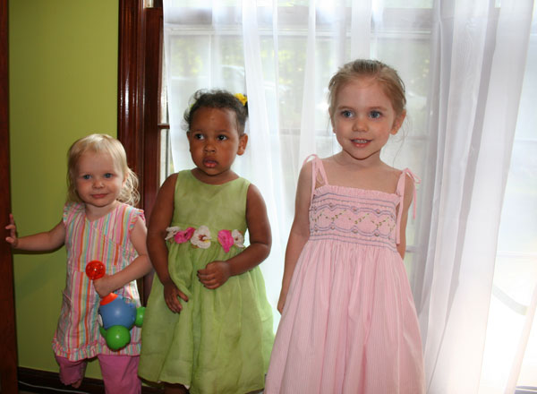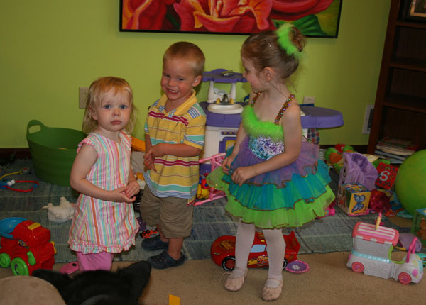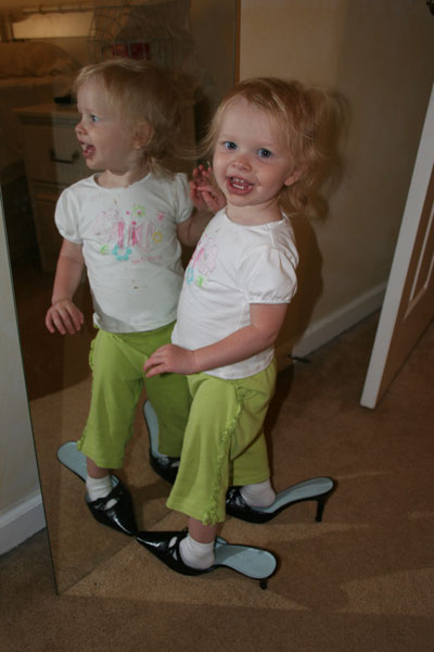 Camille had her first ballet recital. The ballet group performed "Sleeping Beauty". Her class (2 1/2 - 3 yr olds) were the Spring & Summer fairies. They were adorable. Camille lit up on stage. She kind of did her own thing, but, boy, was she enjoying her performance! I laughed so hard I cried. Her funny quote for this month: " Um, Mom, how about Lesah goes to bed now and I stay up a little later. Would that be cool? "(she says with a little half-wink). Lesah's shoe fetish continues. I added a couple cute pics of her in various shoes. Her hair has grown out a lot more in the back & she has a bit of a mullet going on. :) I really noticed it in a couple of the pictures below. She's such a cutie!